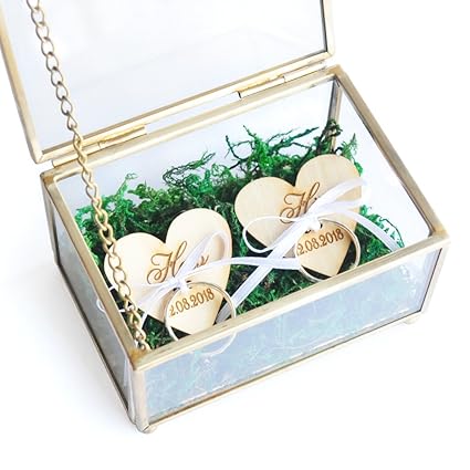 F M Handmade Personalized Wedding Ring Box Ring Bearer Box Custom Copper Ring Box Glass Ring Box