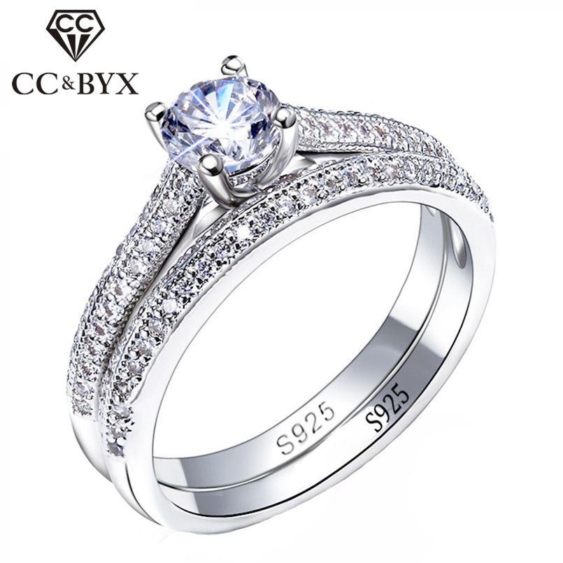 Cc 925 Silver Rings For Women Simple Design Double Stackable Fashion Jewelry Bridal Sets Wedding Engagement Ring Accessory Cc634
