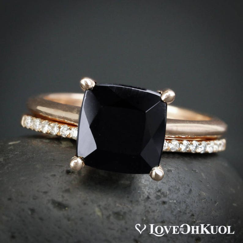 Unique Custom Black Gold Pink Tourmaline Engagement Ring