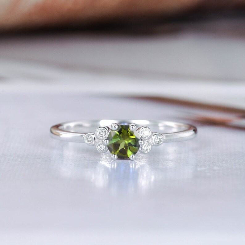 Tourmaline Engagement Ring Tourmaline Diamond Ring Green Tourmaline Ring