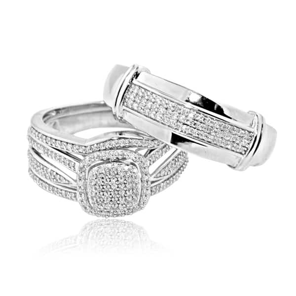 10k White Gold Diamond Trio Engagement Wedding Rings Set For Him 4mm Her 3 Mm 3 Piece 0 10 Cttw Brilliant Cut