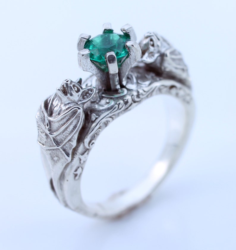 Emerald Bat Ring Bat Jewelry Silver Ring Gothic Jewelry Gothic Rings Bats Animal Rings Goth Engagement Wedding Gothic Ring Vampire Ring Goth