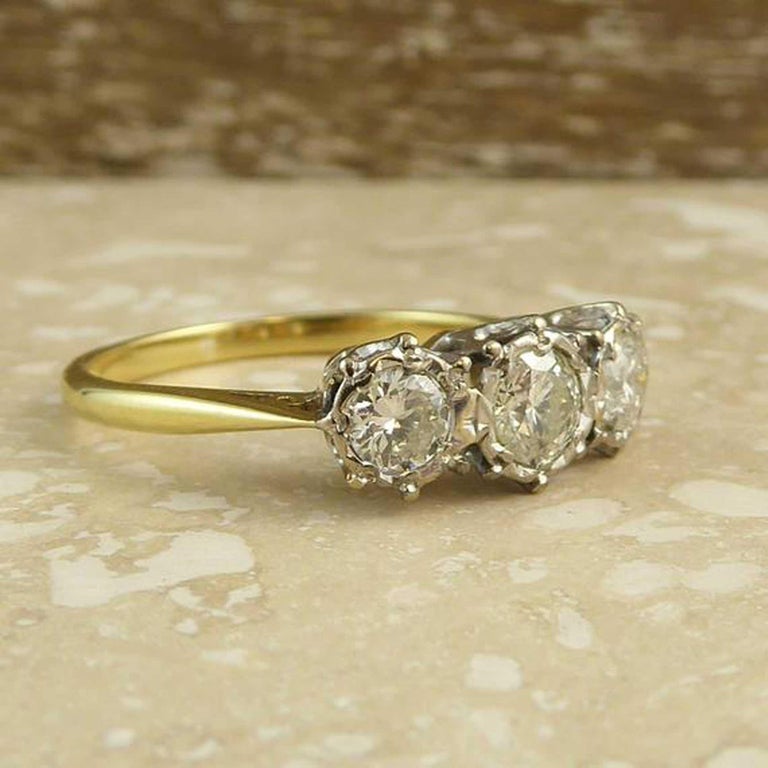 Vintage 0 50 Carat Diamond Engagement Ring Three Stone Fancy Starburst Setting
