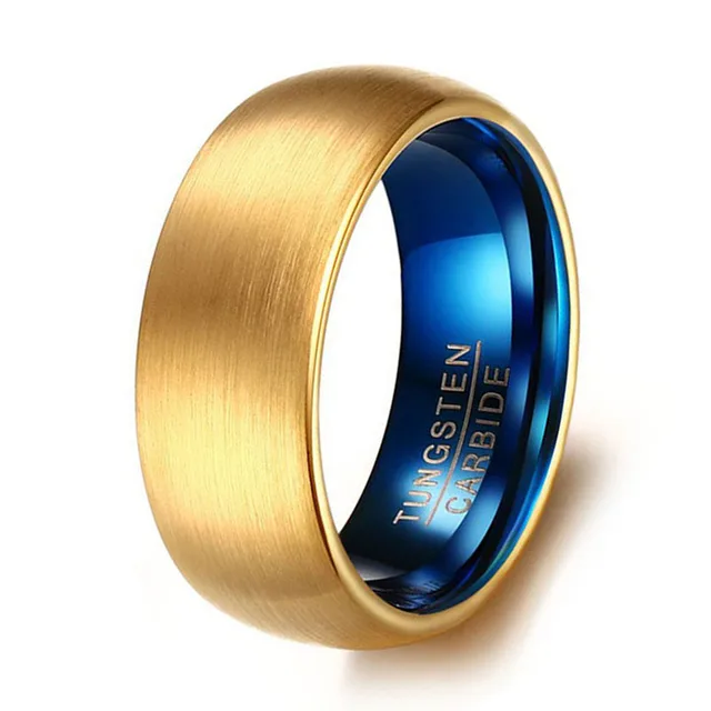 Us 15 1 32 Off Top Quality Wedding Band Gold Color Tungsten Carbide Ring Blue Inside 8mm Width Wedding Engagement Ring For Men In Wedding Bands From