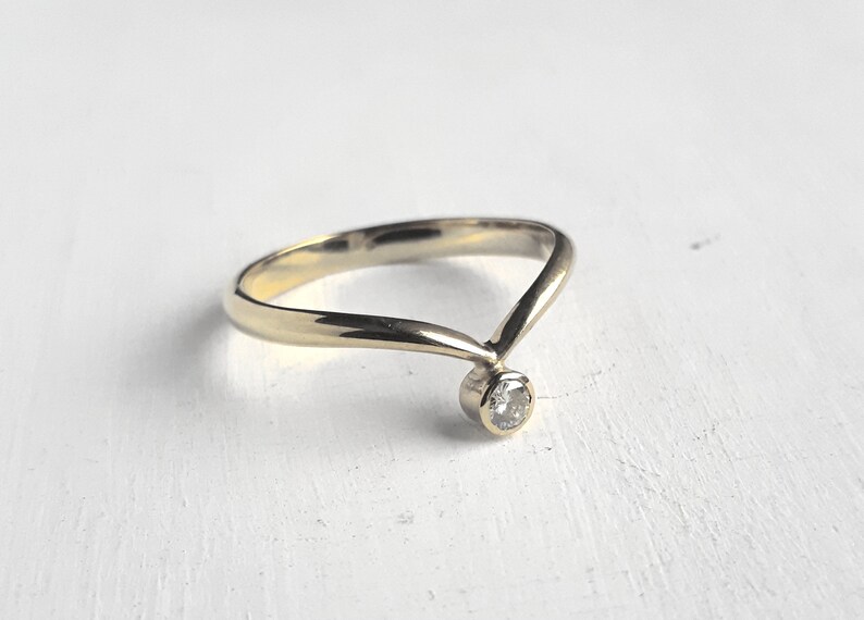 Offset Diamond And White Gold Wedding Ring Minimalist Stacking Chevron V Ring Simple Design Moissanite Ring