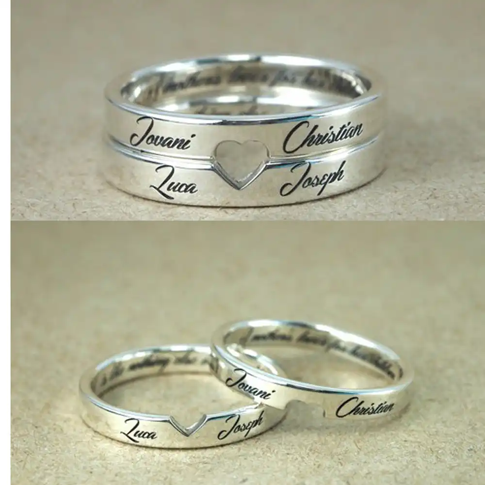 Personalized Stackable Engagement Rings Customized Names Engraved