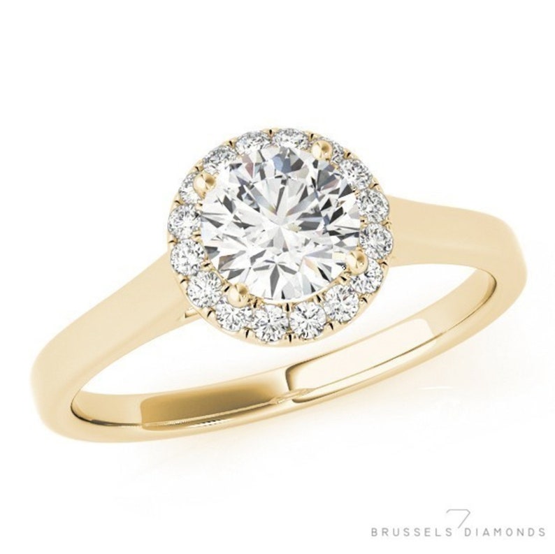 0 60 Ct Diamond Halo Engagement Ring Round Diamond Engagement Ring 100 Natural Diamond Round H Si2 Diamond Halo Ring 14k Yellow Gold