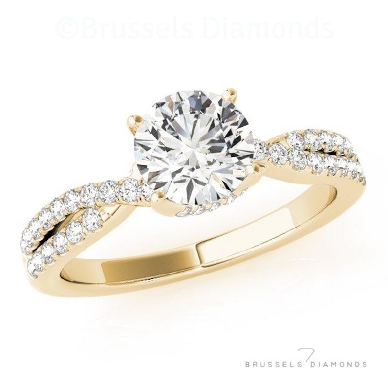 0 75 Ct Split Shank Engagement Ring Split Diamond Ring Twist Ring 100 Natural Diamond Engagement Ring Round H Si2 14k Yellow Gold Ring