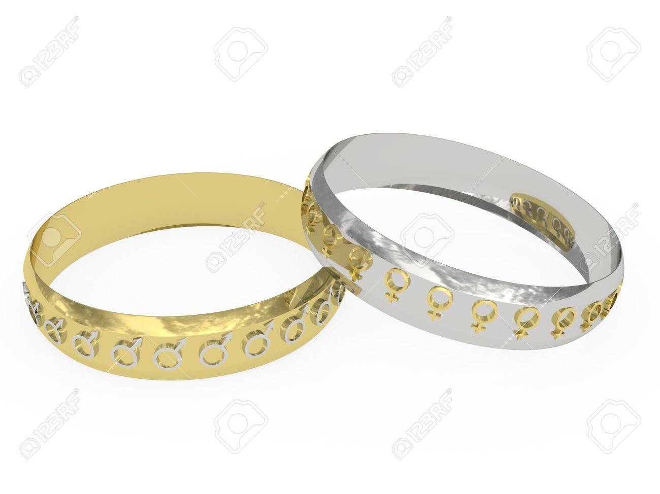 Wedding Rings With Male And Female Symbols Rendered With Soft