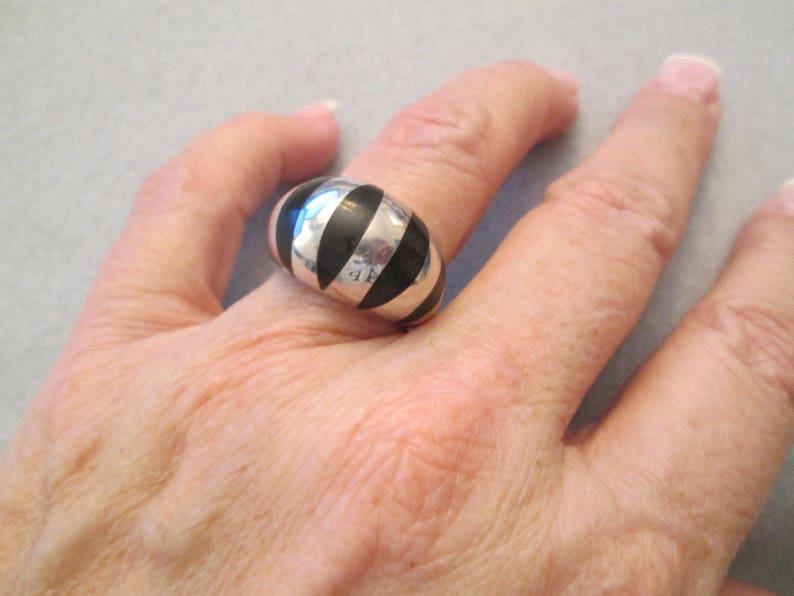 Made In Spain Fabulous Sterling Silver Ring With Petrified Wood Inlay Heavy Vintage 1970 S New Old Stock Never Worn