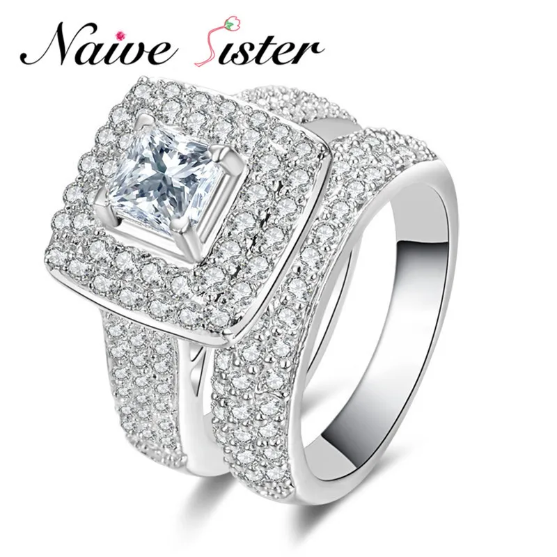Modyle 2019 New Fashion Square Aaa Cz Stone Ring Set Gold And Silver Wedding Engagement Ring For Woman Wholesale