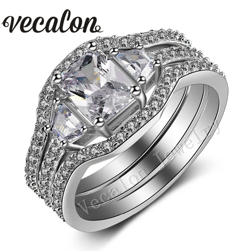 Us 13 77 49 Off Vecalon Amazing 2016 New Aaaaa Zircon Cz Engagement Wedding Band Ring Set For Women 10kt White Gold Filled Party Ring R123 In