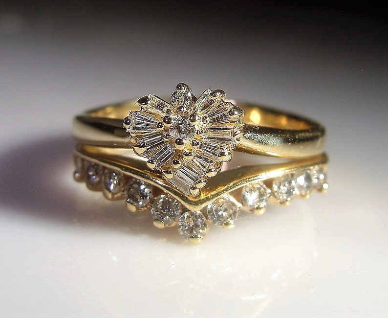 14k Bridal Ring Set Wedding Ring Set Heart Shaped Engagement Ring Chevron Wedding Band 60 Tcw Bridal Set Vintage Wedding Rings Sz 7