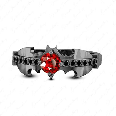 Gemstar Jewellery Red Garnet Black Simulated Diamond 14k Black Gold Finish Batman Wedding Ring