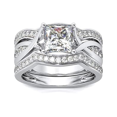 Pophylis Women Infinity Wedding Ring Set White Gold Plated 3pcs Engagement Set 1 9ct Princess Cut Clear Cubic Zirconia Size 6 7 8 9