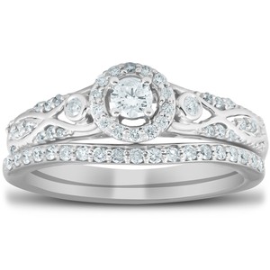 Details About 1 2 Ct Halo Round Diamond Vintage Engagement Wedding Ring Set 10k White Gold
