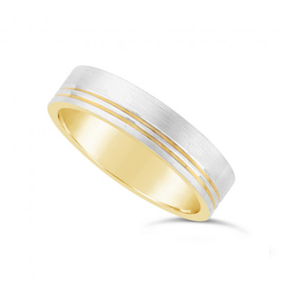 Gents 9ct Yellow Gold Wedding Ring With A 9ct White Gold Brushed Onlay Plus 2 Narrow Grooves To One Side Of The Wedding Band