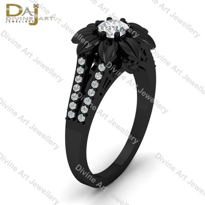 Diamond Gothic Skull Flower Engagement Ring Womens Wedding Gift Her 925 Silver Ebay