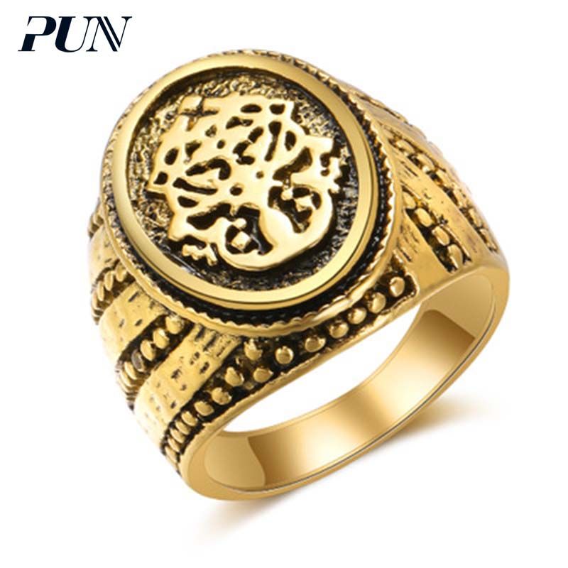 Pun Big Steel Finger Muslim Islam Male Vintage Gothic Antique Ring Gold Punk Mens Signet Rings For Men Bts Accessories