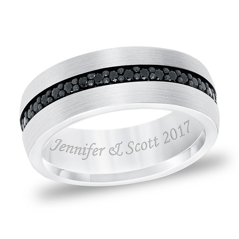 Men S 8 0mm Black Sapphire Groove Brushed Finish Wedding Band In Tungsten 1 Line Zales