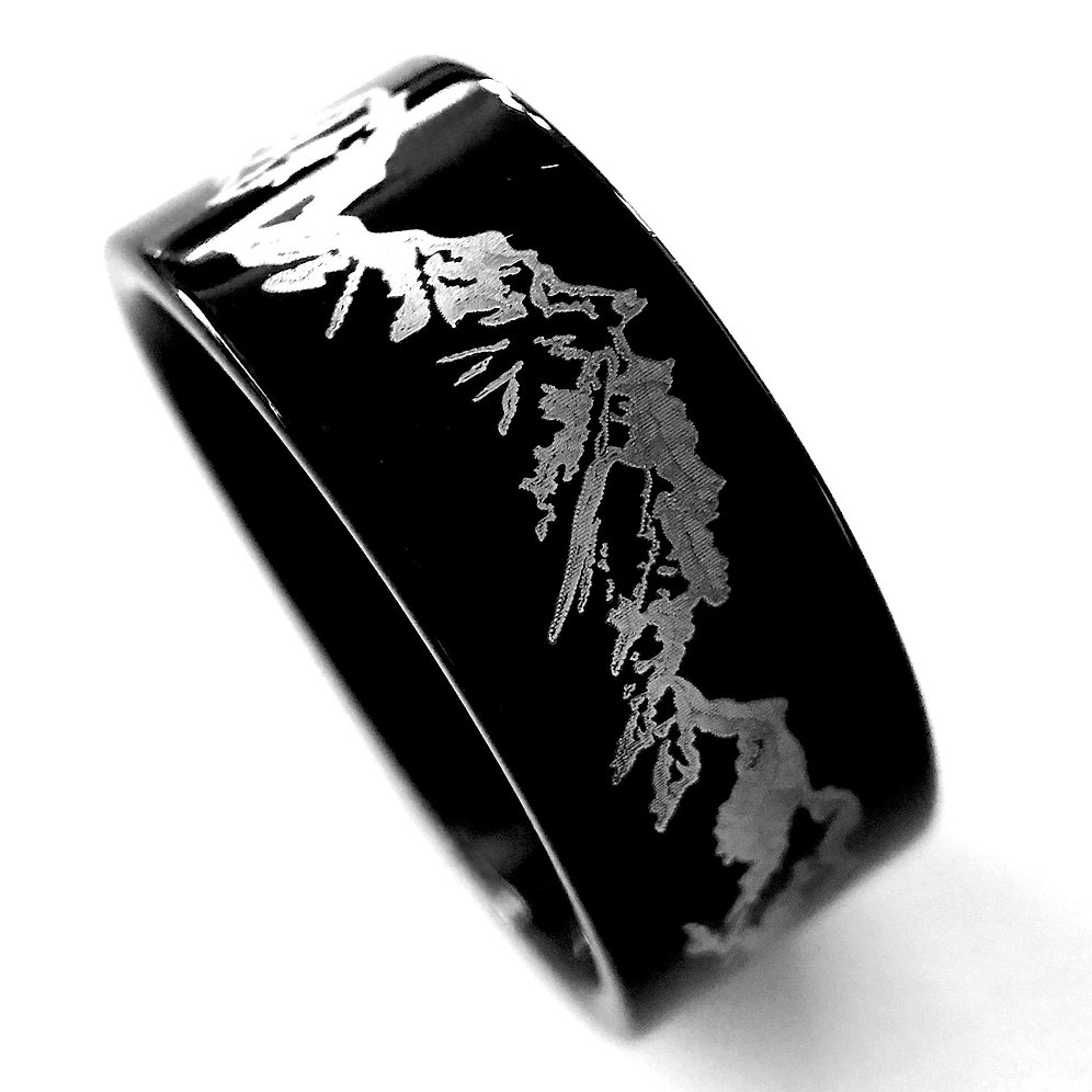 Mountains Ring Black Tungsten Wedding Bands His And Her Promise Rings