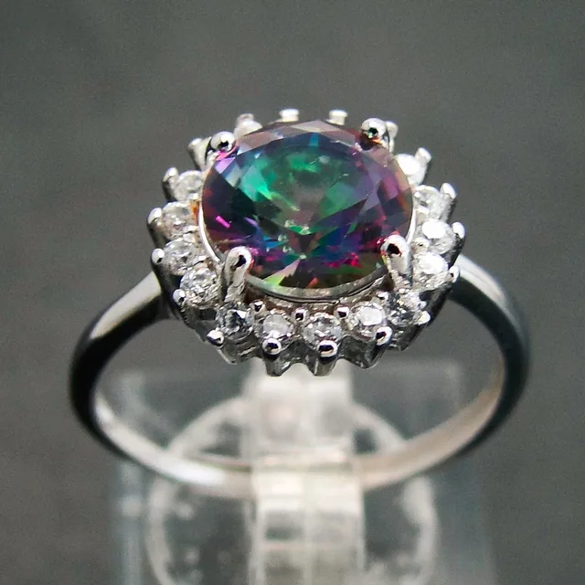 Us 20 35 925 Sterling Silver Rainbow Mystic Topaz Gemstone Rings 8x8mm Round Trendy Engagement Wedding Ring Fine Jewelry For Women In Rings From