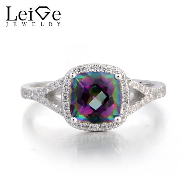 Us 63 0 40 Off Leige Jewelry Mystic Topaz Ring Engagement Ring Real 925 Sterling Silver Ring Cushion Cut Rainbow Gemstone November Birthstone In