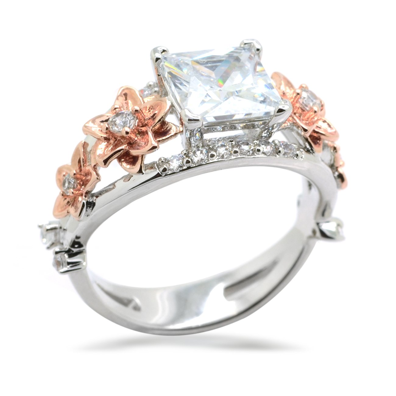 Amazon Com Sparkly Bride Cz Wedding Ring Set Flower Pink Rose Gold