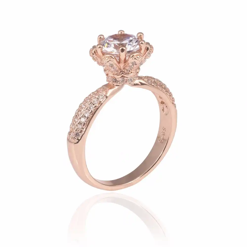 Promotion Flower Design Solid 100 925 Silver Rose Gold Wedding Rings Jewelry For Women 2ct Simulated Diamond Engagement Ring