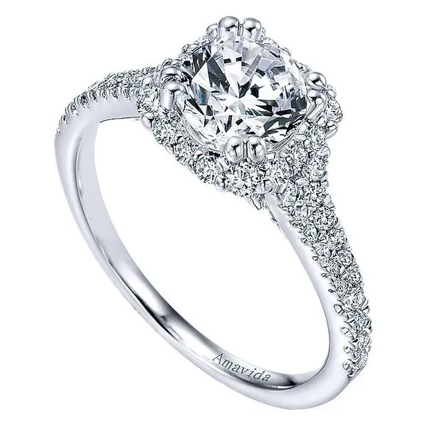 Amavida White Gold Split Shank Halo Engagement Ring