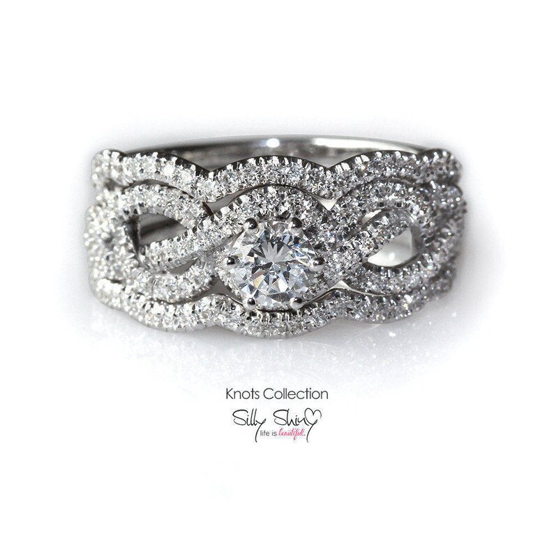 1 45 Ct Art Deco Engagement Ring With Two Wedding Bands Infinity Engagement Ring Vintage Rings Pave Diamond Ring Cluster Ring