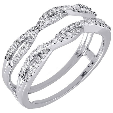 Diamond Channel Set Solitaire Enhancer Ring Guard 1 2 Ct T W In 14k White Gold