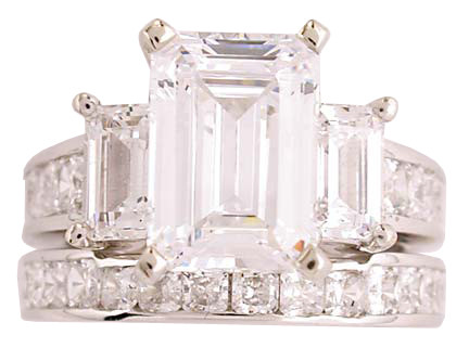Trinity Stunning 4 7ct Emerald Cut Russian Ice Cz Wedding Ring Set