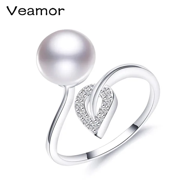Us 69 9 Veamor Female Pearl Ring Fashion 925 Sterling Silver Jewelry With Leaves Vintage Wedding Rings For Women Birthday Stone Gifts In Rings From