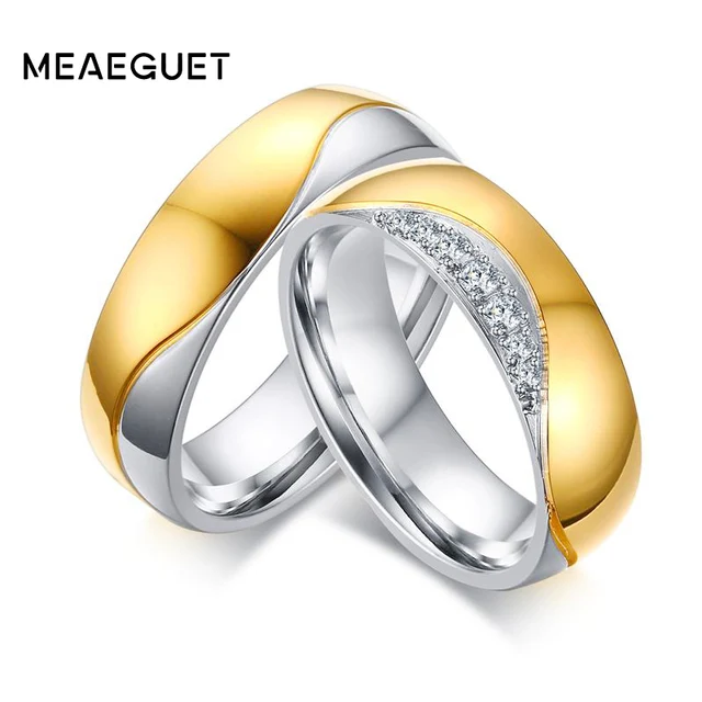 Us 3 68 50 Off Meaeguet Gold Color Wave Cz Wedding Rings High Polished Romantic Lover S Rings Stainless Steel Wedding Bands In Engagement Rings From