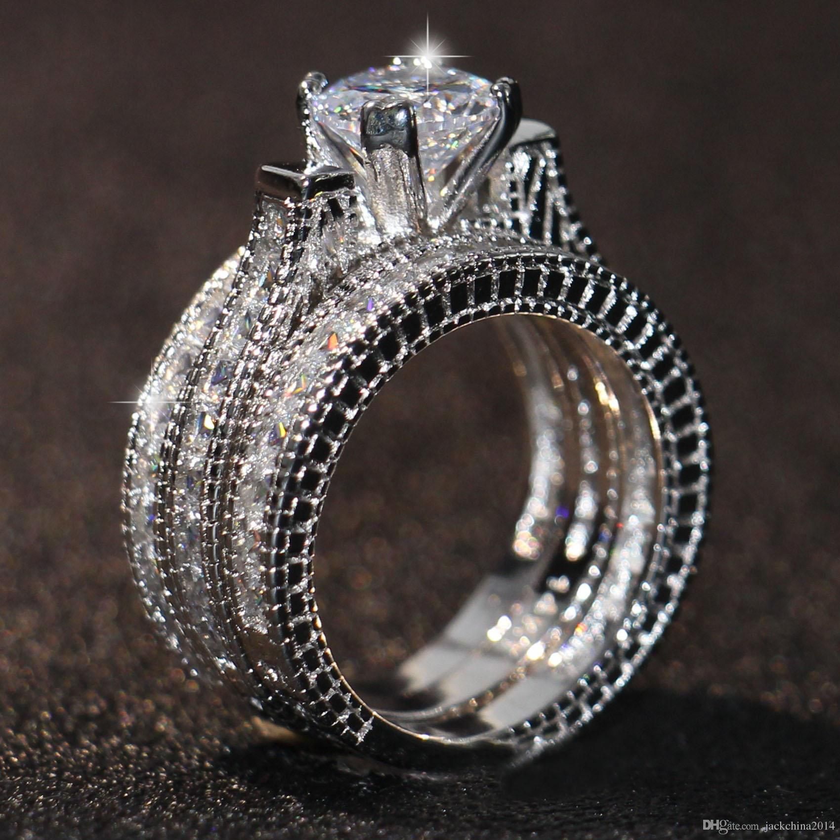 Free Shipping Hot Sale Engagement Topaz Simulated Diamond Diamonique 14kt White Gold Filled 3 Wedding Women Ring Sets Gift Size 5 11