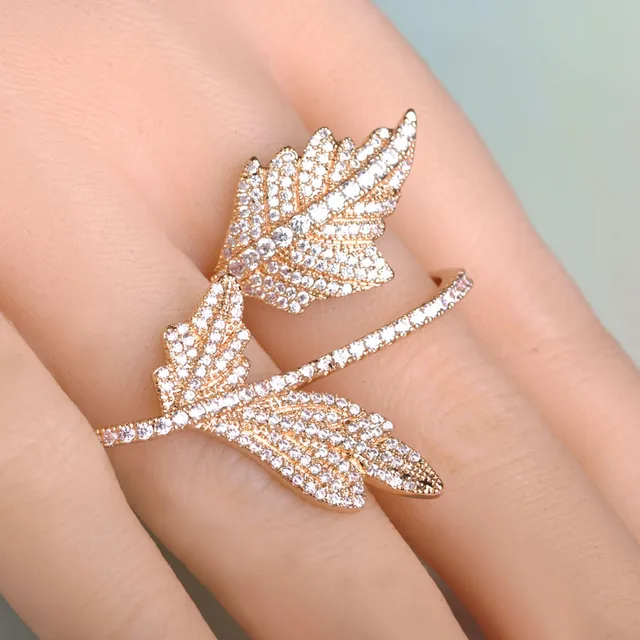 Us 16 38 25 Off India Luxury Leaves Zircon Double Finger Rings For Women Big Wide Two Dedo Aros Wedding Bridal Bague Couple Oro Anillo Joyas In