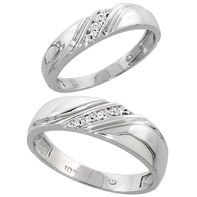 Silver City Jewelry 10k White Gold Diamond Wedding Rings Set 2 Piece His Hers 4 5 Mm 0 05 Cttw Sizes 5 14