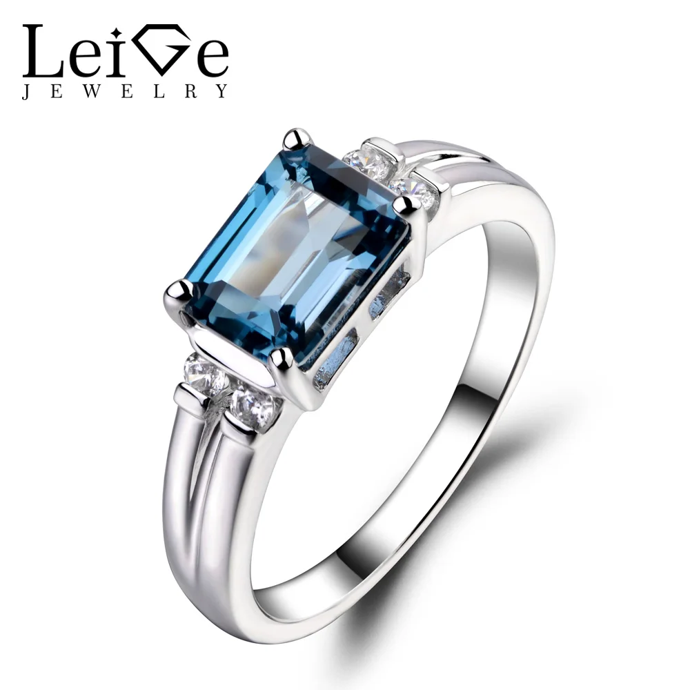 Leige Jewelry London Blue Topaz Ring Emerald Cut Gemstone Engagement Wedding Rings For Woman Sterling Sliver 925 Fine Jewelry In Rings From Jewelry