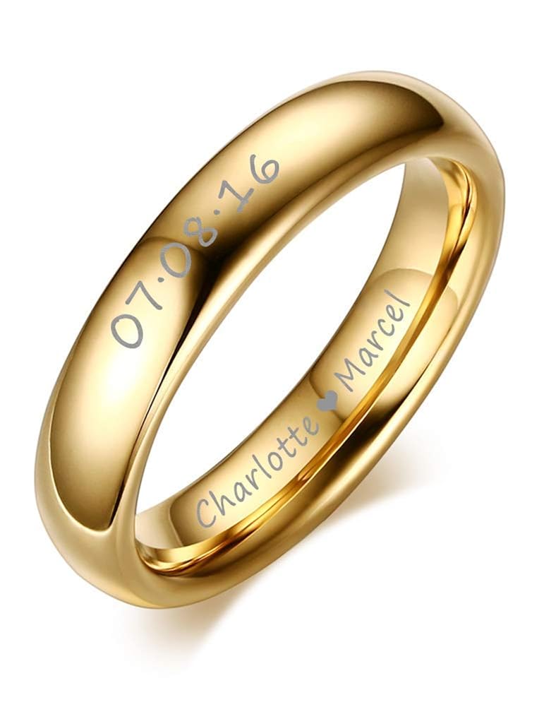 Kalapure 6mm 8mm 14k Gold Stainless Steel King Queen Rings Couples Ring For Men Women Wedding Bands Beveled Edges Comfort Fit