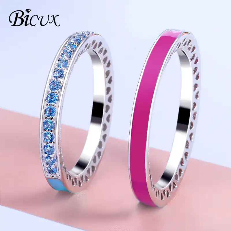 Bicux Love Silver Heart Crystal Wedding Rings For Women Female Men Maleengagement Fashion Charm Cubic Zirconia Mens Ring Jewelry