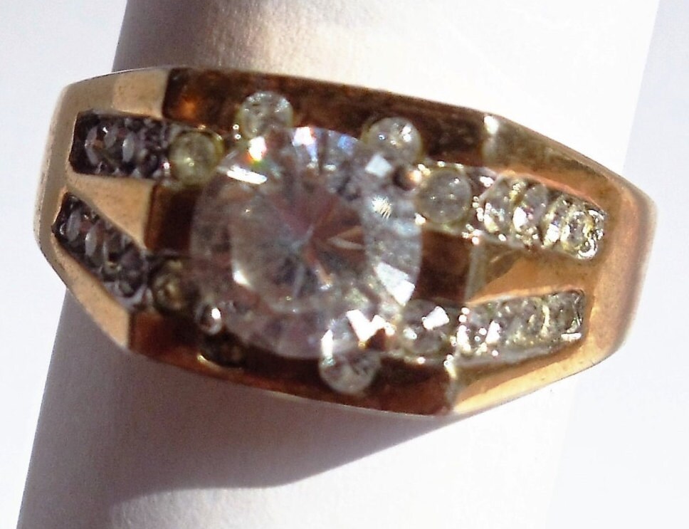 Vintage 18kge Rsc Cubic Zirconia Mens Ring Size 13 Ring 18k Gold Electroplated Cz Classic Double Pave Band Ring Mens Wedding Ring 1980s