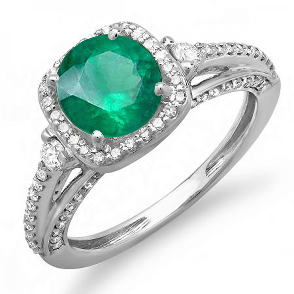 2 10 Ct 14k White Gold Green Emerald White Diamond Engagement Halo