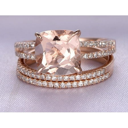 Huge 2 50 Carat Cushion Cut Morganite And Diamond Art Deco Trio Wedding Ring Set In Rose Gold