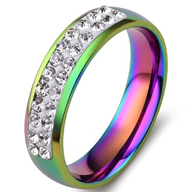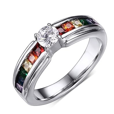 Rainbow Cz Pave Set Lgbt Jewelry Wedding Band Ring Womens Lesbian Pride