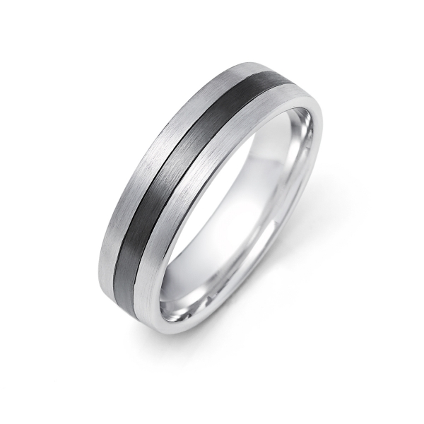 14k White Gold And Black Ruthenium Wedding Band