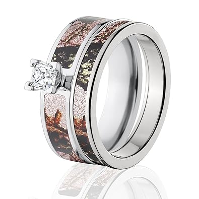 Amazon Com Mossy Oak Camo Bridal Set Camo Wedding Rings Pink