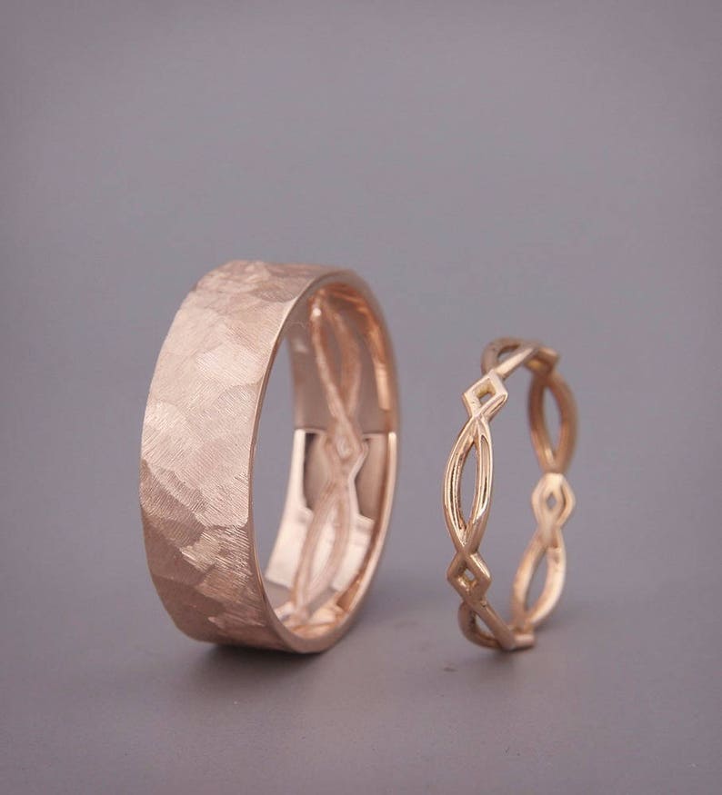 14k Rose Gold Eternity Wedding Rings Set Handmade 14k Rose Gold Eternity Wedding Rings His And Hers Wedding Bands Set