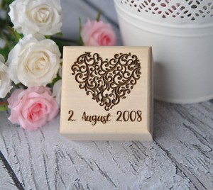 Personalised Wedding Ring Box Wooden Stamped Hearts
