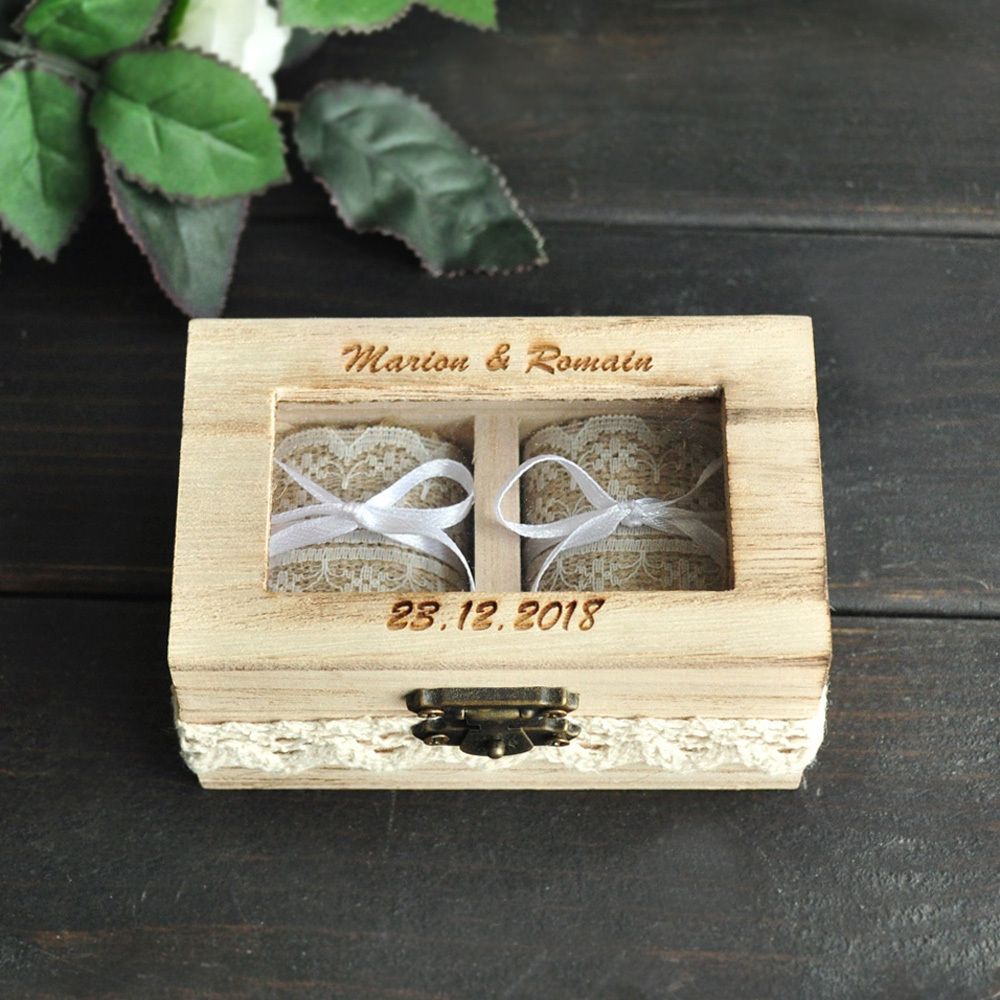 Details About Proposal Personalised Wedding Ring Box Gift Wooden Ring Box Holder Bearer Pillow